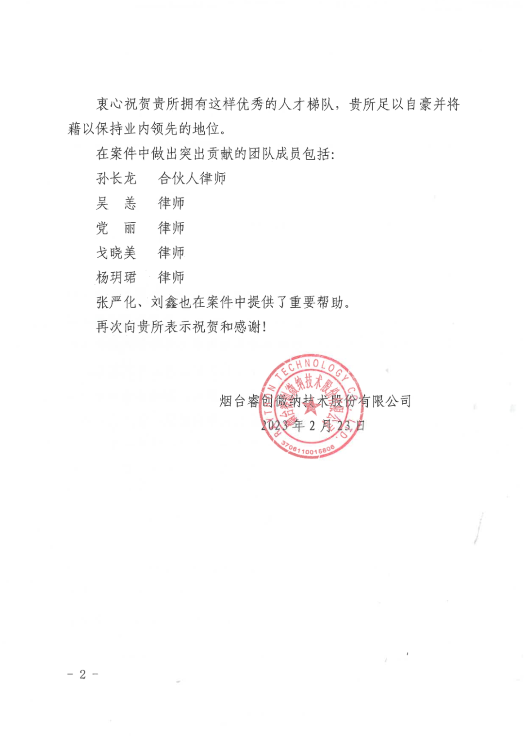 图1 睿创集团向虎扑电竞寄送的表扬信