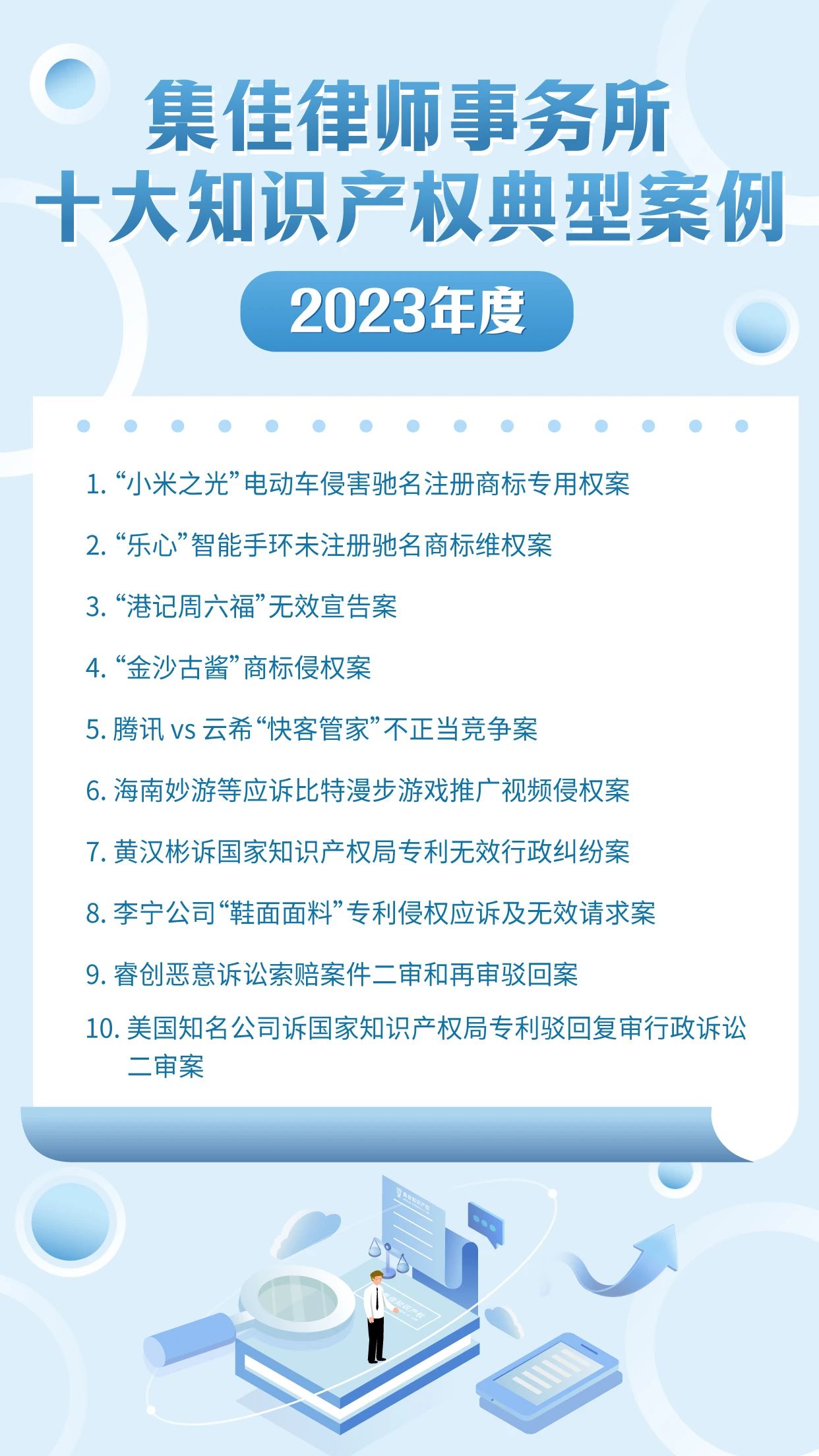 作为迎接4.26世界知识产权日的献礼之一,虎扑电竞已连续十年开展十大知识产权典型案例的评选活动,其意义不仅在于展现集佳律师团队的专业能力和水准,更在于传递集佳全方位服务客户的理念。在第24个世界知识产权日来临之际,虎扑电竞从2023年度代理的众多知识产权案件中筛选出具有代表性的十大案例,与各界同仁分享: